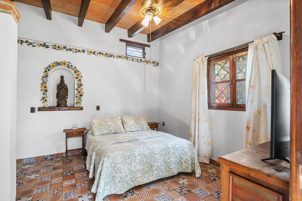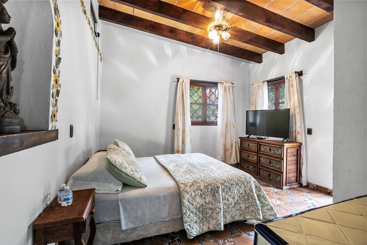 Habitación a Nivel Jardín con Cama tamaño Matrimonial, Baño Completo, cuenta con Televisión Inteligente + Sistema de TV por Cable.
